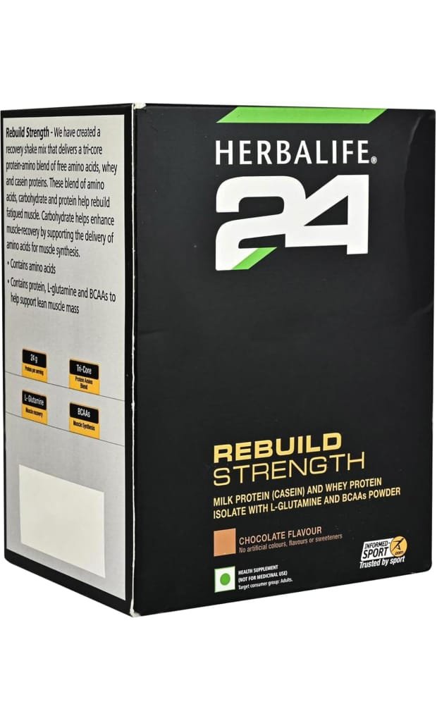Herbalife Nutrition 24 Rebuild Strength is a scientifically formulated post-workout recovery shake, created to support athletes and active individuals after intense exercise. With a combination of high-quality proteins, carbohydrates, amino acids, vitamins, and minerals, it helps the body recover, rebuild, and restore energy levels after training sessions. The chocolate flavor gives it a rich and smooth taste, making it enjoyable while delivering essential nutrition.