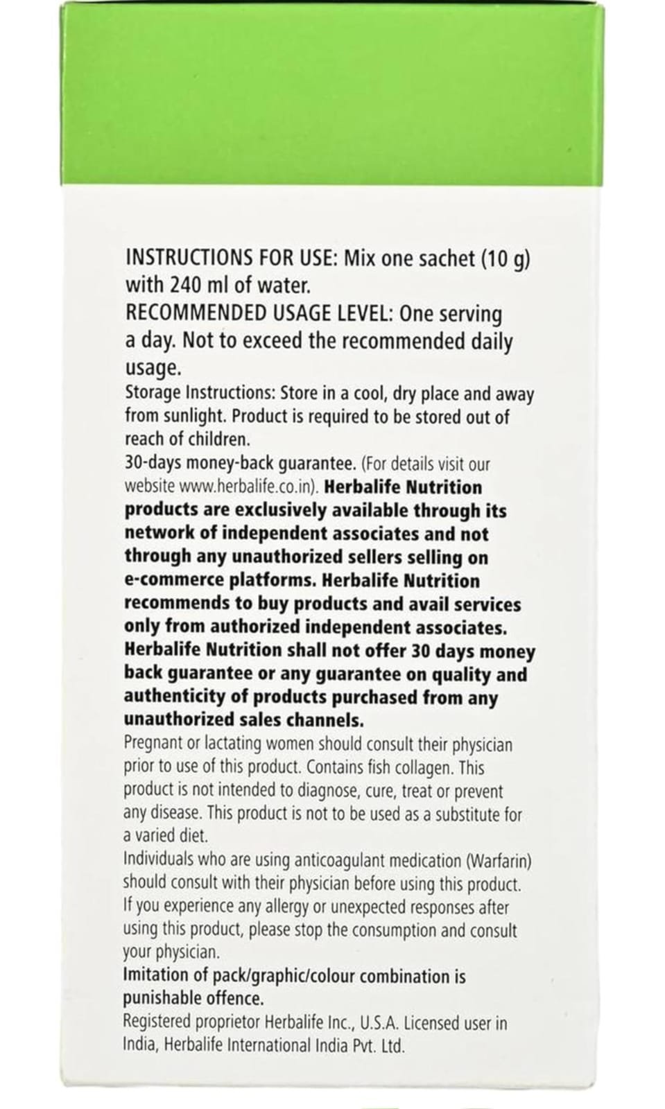 Mix one sachet (10 g) in 240 ml water and drink once daily. Do not exceed the recommended serving.
