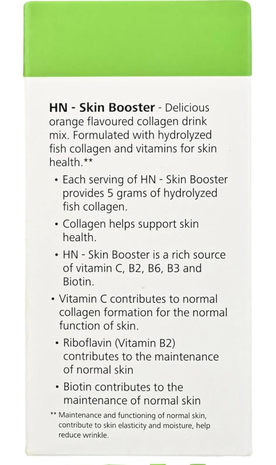 HN – Skin Booster is a collagen-based nutritional supplement designed to promote skin health and beauty from within. It combines hydrolyzed collagen with essential vitamins to support elasticity, hydration, and a youthful glow.