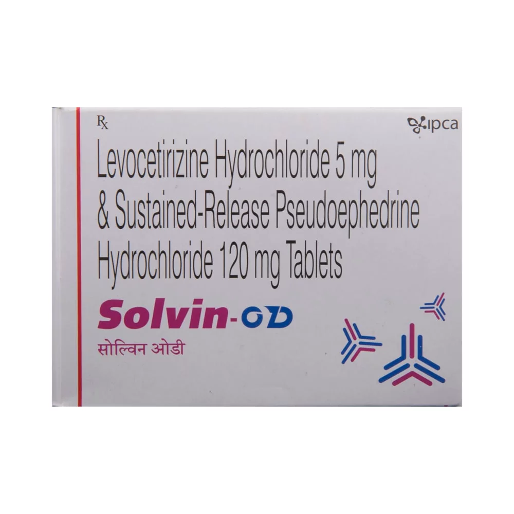 Solvin-OD Tablet SR is used in the treatment of Sneezing and runny nose due to allergies. View Solvin-OD Tablet SR (strip of 10.0 tablet sr) uses, composition, side-effects, price, substitutes, drug interactions, precautions, warnings, expert advice and buy online at best price on Easyrxdrug.com