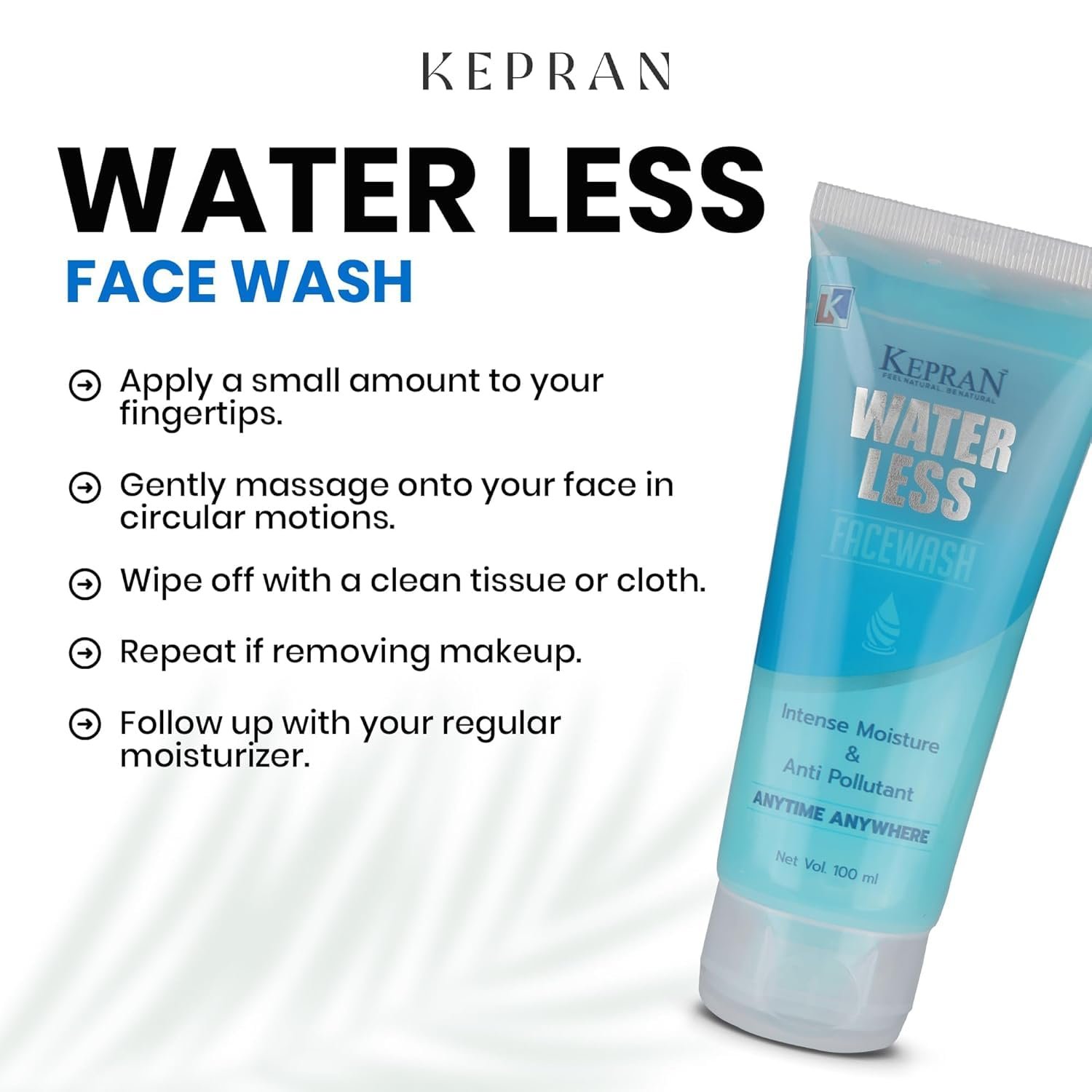 Water Less Facewash is a gentle, hydrating cleanser designed to remove impurities, dirt, and pollutants while preserving the skin’s natural moisture.